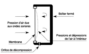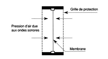 Le capteur à pression est constitué d’une membrane placée sur une cavité fermée, seule la face extérieure de la membrane reçoit les vibrations sonores.