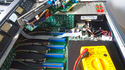 f/inspecter les tranche une à une pour bien verifier que les differents cavaliers ou detrompeurs sont bien en place, en 1 les cavalier J3 (dynamique de tranche et insert) et en 2 tension principale de l'alimention fantome par defaut la secondaire est toujours 12V en T,
